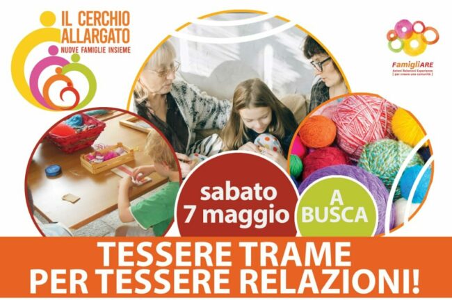 Ultimo incontro di tessitura di Comunità outdoor sabato 07/05 a Busca. Dopo i vivaci laboratori delle scorse settimane a Cuneo, Robilante e Valdieri, il Filatoio, insieme agli altri partner del progetto “Il cerchio allargato. Nuove famiglie insieme” vi dà appuntamento nel Giardino dell’Infinito, di fianco all’Ufficio Postale. Trascorreremo insieme un divertente pomeriggio ludico-creativo intrecciando fili…